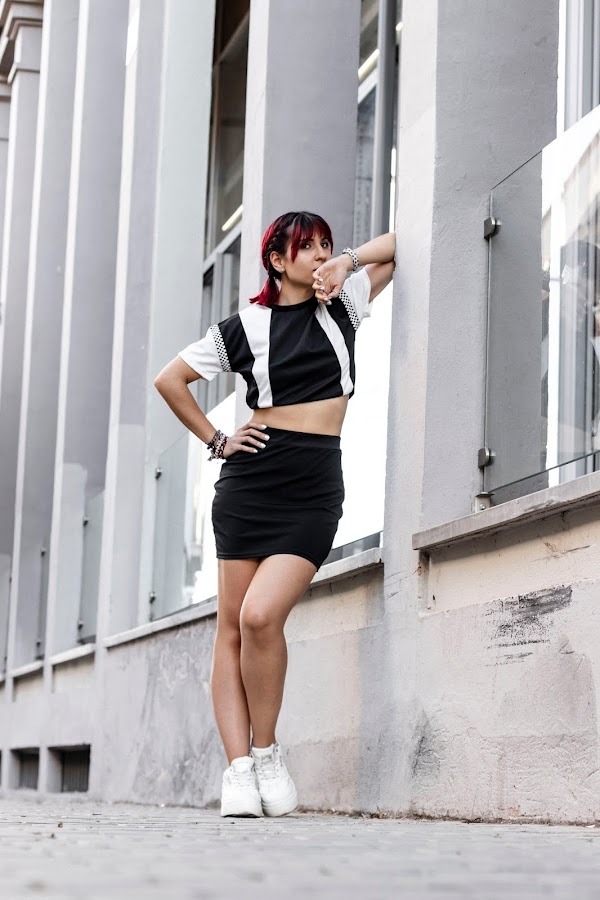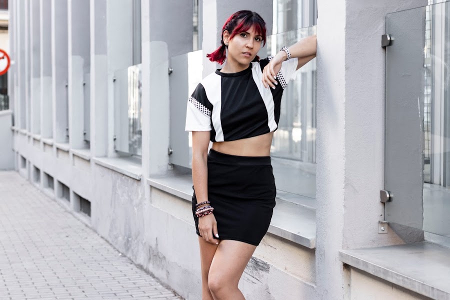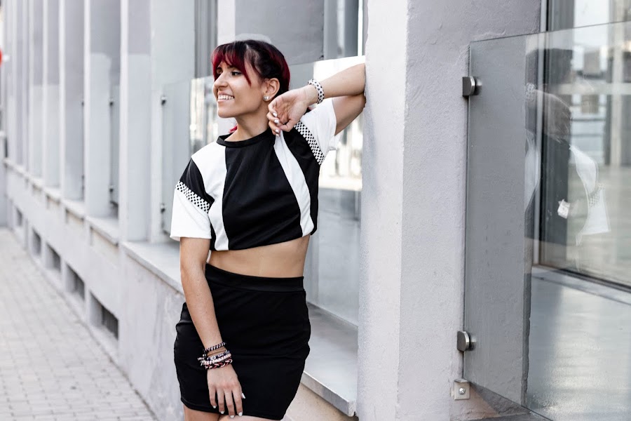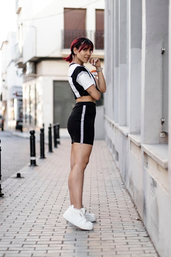 Quería enseñaros este conjuntazo que ya visteis en mi instagram de estilo sport de GIRLMERRY. Un top y una falda súper chula! En blanco y negro combinado con un estampado de cuadros en laterales y mangas. Además, la falda es súper cómoda y un pelín elástica!