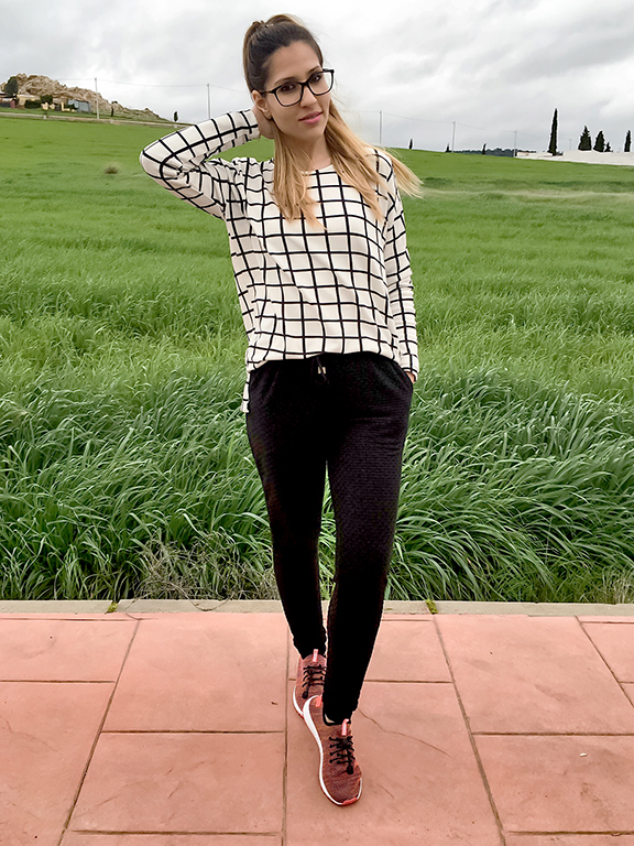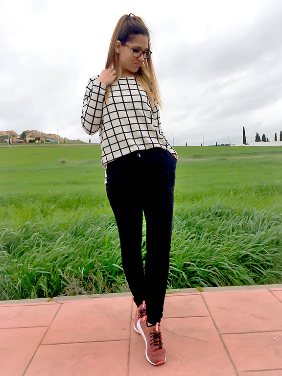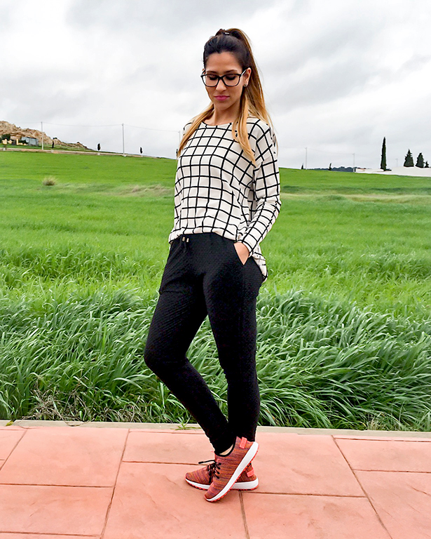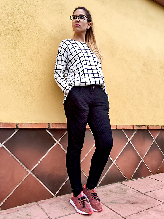 Ya sabéis que los lunes me encantan los looks cómodos y el de hoy especialmente, me encanta, porque a parte de ser deportivo tiene un toque elegante con un pantalón negro súper cómodo y de una tela preciosa y muy original.