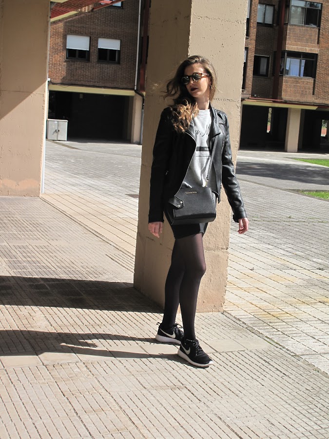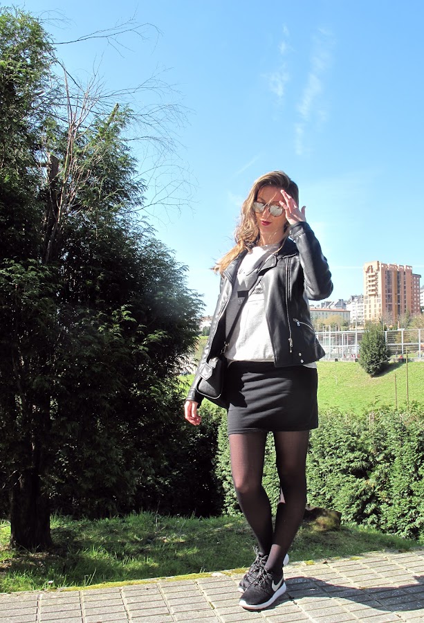 Hoy os dejo un look muy cómodo y que es una combinación que a mi me gusta mucho, uso un vestido a modo de falda superponiendo una sudadera y lo combino con deportivas. Como os he dicho otras veces soy muy friolera así que lo mejor es ser como una cebolla.Aunque a la hora de crear un look sport chic no tienes que limitar la parte sport al calzado o la ropa, ya que existe la posibilidad de mezclar prendas deportivas con zapatos o bolsos muy elegantes. Así, por ejemplo, puedes apostar por sudaderas o camisetas y lucirlas con unas sandalias o unos stilettos o como en mi caso un buen bolso.