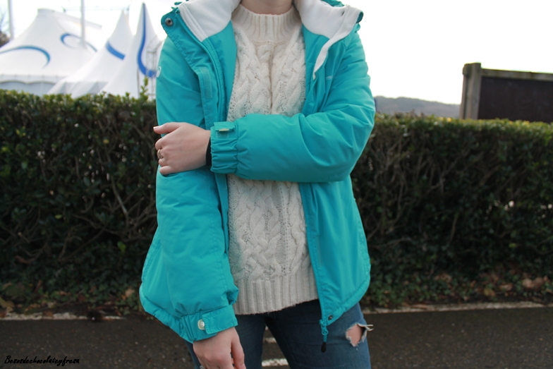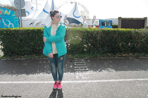 This time I took shelter in green mint ideal for snow, but here properly snowed one day but did not work long :( but if you can smell it ... white wool sweater, jeans and sports in bubblegum pink.
