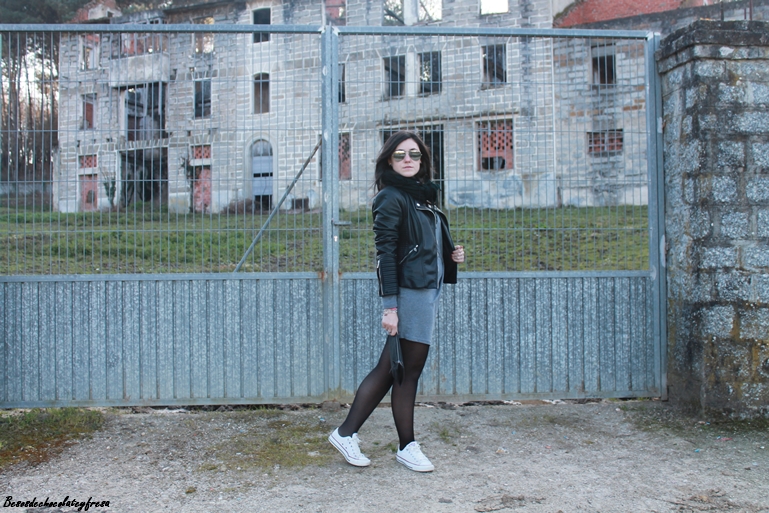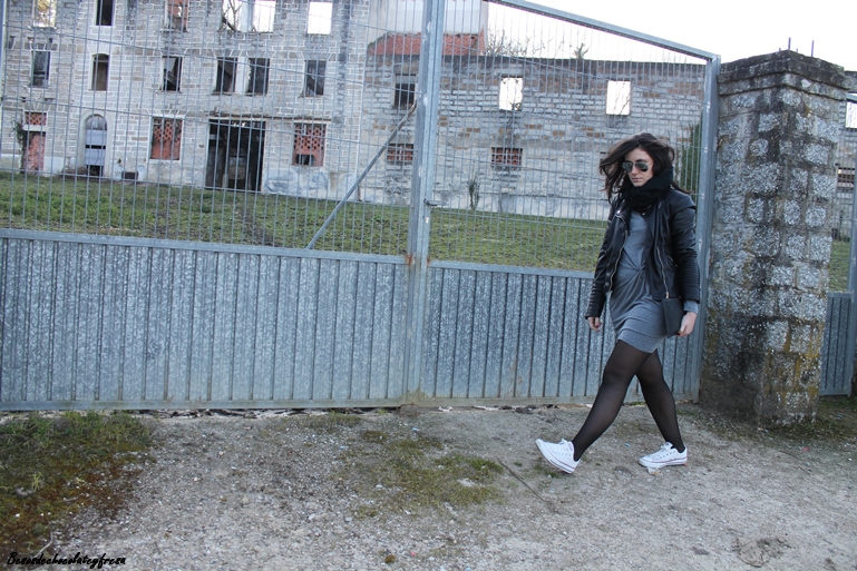 As for the look, I wear my new dress new collection of Lefties knotted at the waist in gray and long sleeves and opt for something comfortable to cycle through the different stands of cars with converse white biker in black with matching clutch. The scenario called our attention because despite being in ruins and seem a bit gloomy had its charm, it was worth the enclosure ... some curious what would be or was.