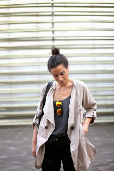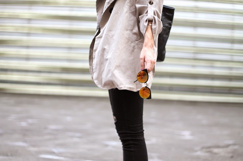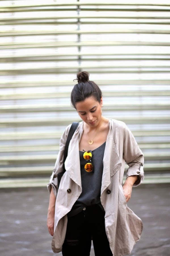 Éstos días ha hecho un tiempo más que estupendo, pero por mi pequeño constipado no quería lanzarme al vacío con mis ganas de "no medias" así que he seguido con vaqueros, y que mejor que acompañarlo de una gabardina fresquita. Me temo que seremos buenas amigas esta temporada. Estrenándola junto con las nuevas gafas polarizadas de Dorado Vintage, me fui a tomar algo aprovechando los días de vacaciones.