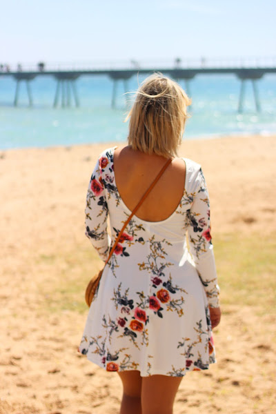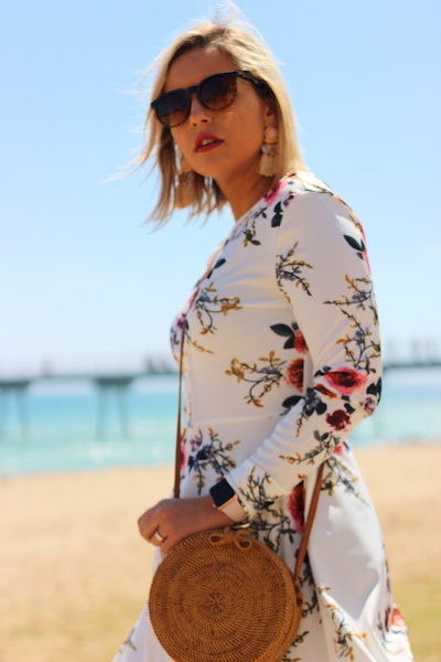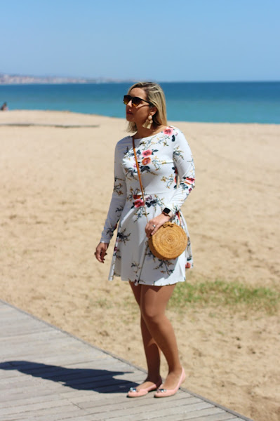El pasado domingo, aprovechando que salió el sol, fuimos a dar un paseo por la playa y estrené mi nuevo vestido de flores de Zaful, que me encantó por el escote de la espalda. Lo combiné con unas bailarinas joya y mi bolsito redondo de mimbre que compré en mi viaje de novios de Bali. Un look cómodo y dulce, perfecto para los días de primavera.