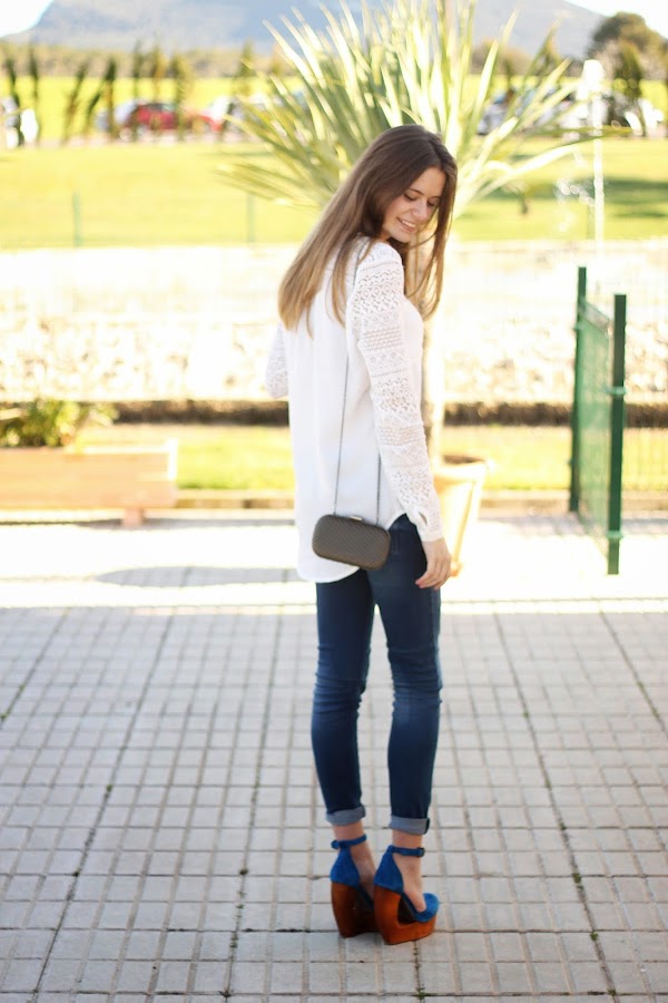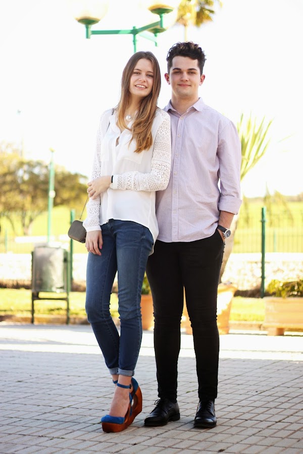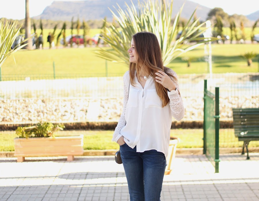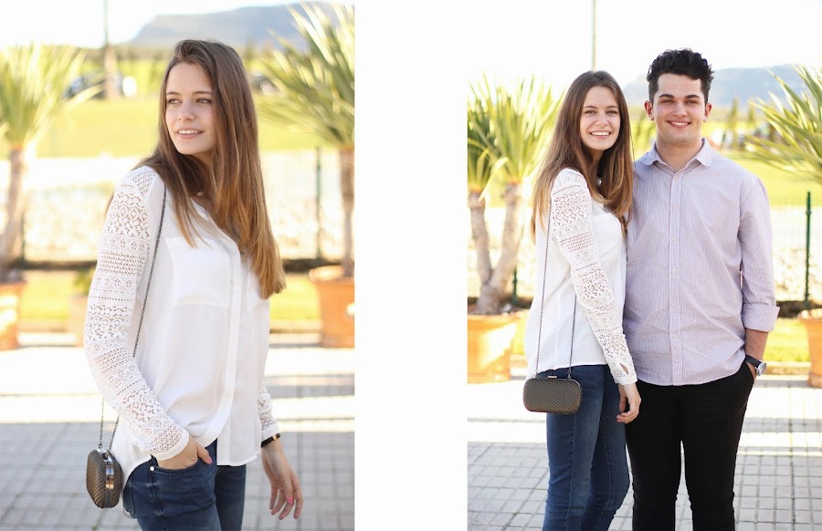 Como podéis ver en el post de hoy vengo muy bien acompañada. Las fotos son en un restaurante llamado Binicomprat en Palma de Mallorca. Os enseñamos como ir sencillos pero ideales a una comida o cena familiar o con amigos. Los dos vamos vestidos con looks de primavera ya que el fin de semana pasado hizo mucho calor (¡Parecía verano!) La blusa que llevo la podéis encontrar en Blumonde.