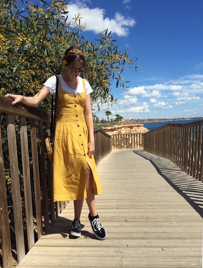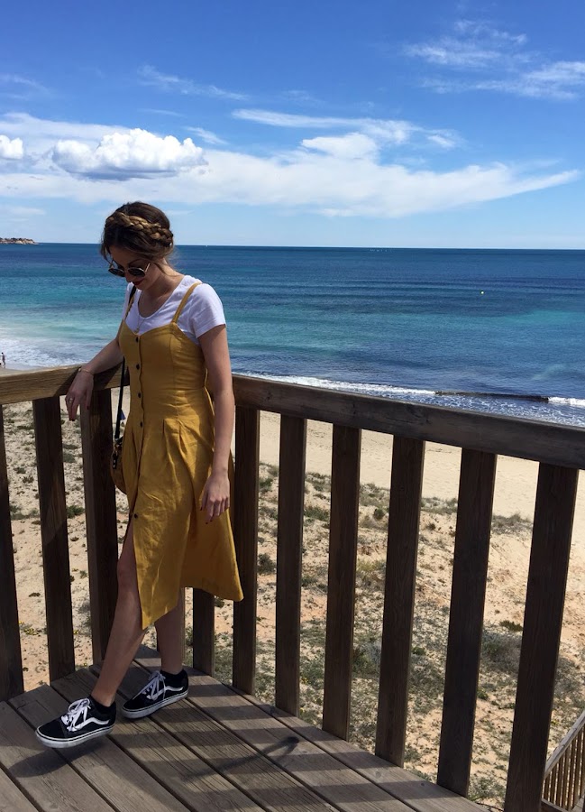 Me enamoré de este vestido color mostaza de Pull&Bear y lo compré pensando en el calorcito que parece que no acaba de llegar.El vestido tiene un largo midi, que no suelo utilizar porque, en ocasiones que me he probado algo de este estilo, sentía que no me favorecía y que me hacía bajita. Al final, no todas las tendencias te sientan bien y lo que buscamos es sacarnos partido y estar agusto con aquello que llevamos, pero en este caso al tener la abertura delantera me gustaba y decidí arriesgar.