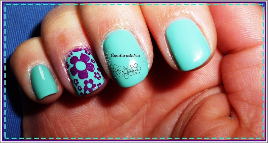 Comenzamos con una capa de base y dos del 625 For Audrey (me encanta este esmalte) y a continuación realizamos un estampado sobre el anular, será una manicura sencilla pero vistosa. Una capita de Poshé y listo.