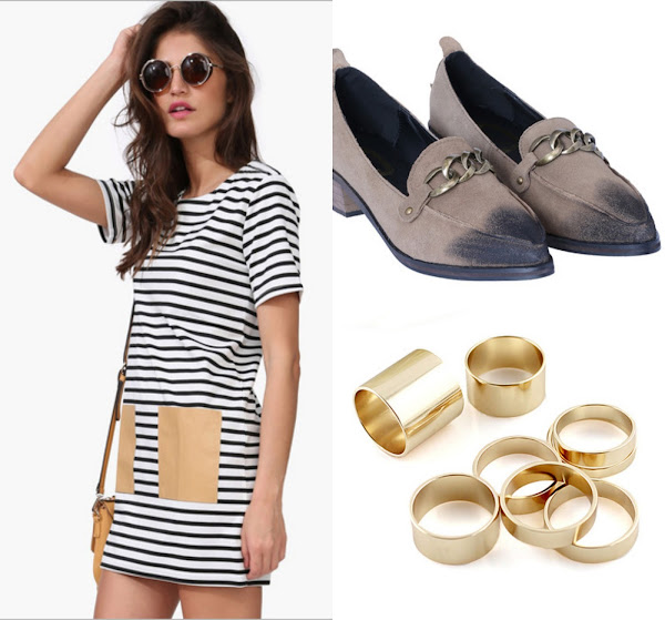 *The first one is compose of a stripe dress, shoes with a special touch on top, which is worn and some gold rings.