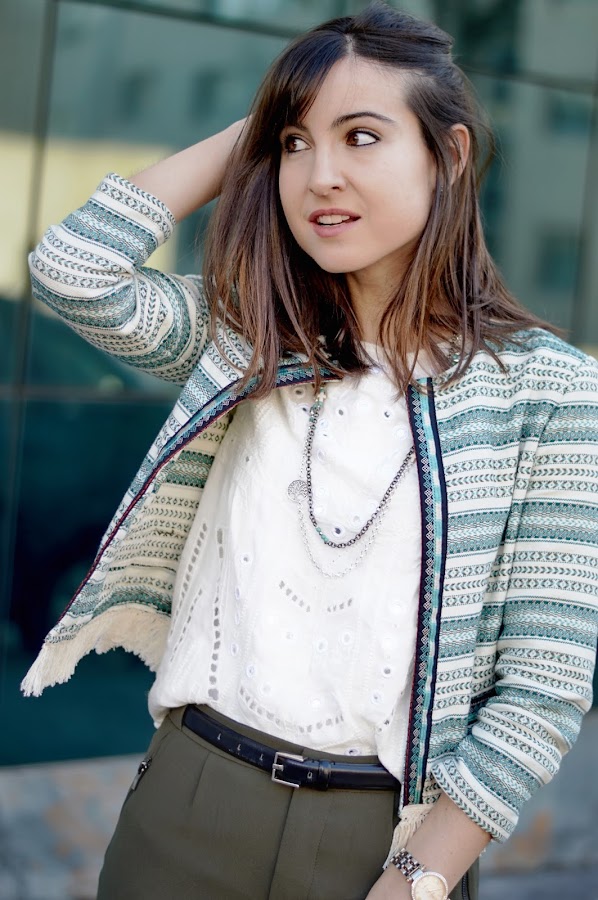 Pantalón, camiseta y chaqueta: Bershka / Bolso: Asos / Colgante: Compostelanae / Zapatos: Stradivarius / Gafas: Rodenstock