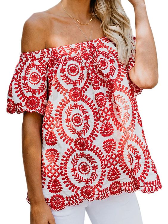 Blusa bordada / Embroidered off-shoulder tunic