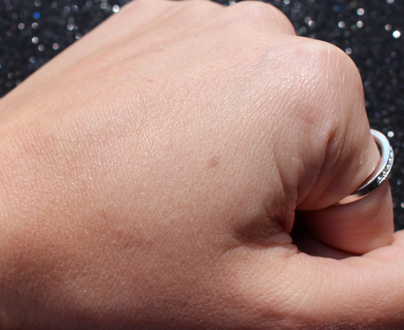 Como veis en estas dos fotos, apliqué una pequeña cantidad de producto sobre la mano, encima del lunar que tengo para ver su eficacia y como bien indica en el tono, este es iluminador más que corrector. Corrige, ya que el lunar se ve más difuminado pero no cubre mucho y si que la zona la deja iluminada y con un brillo natural muy bonito.