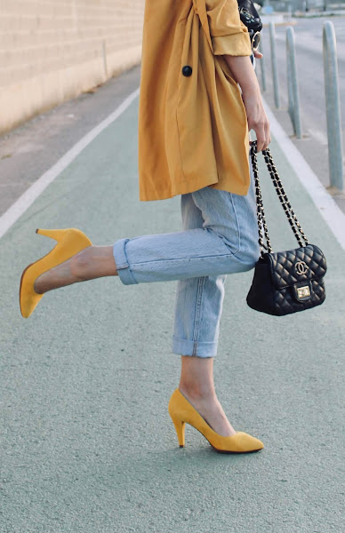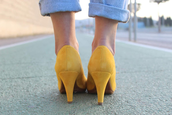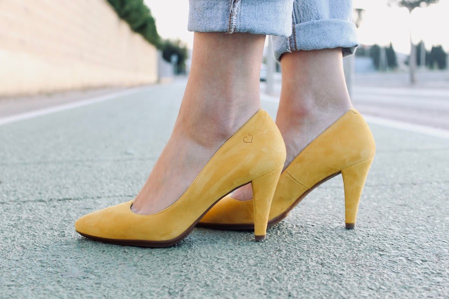 Los míos como veréis son color mostaza (Me apetecía mucho este color) pero los tienen en 10 colores más y también con un tacón un poco más bajo.