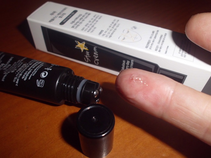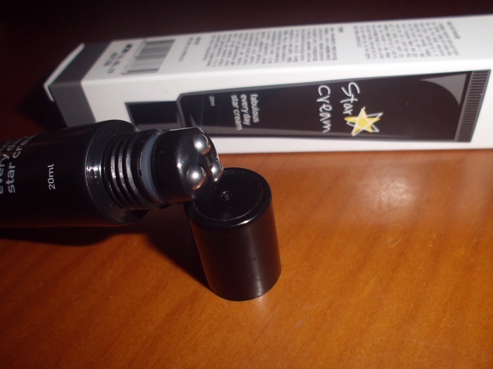 Antes de echarse la crema; solo se la ha eschado en los parpados y en la zona de la estrella: