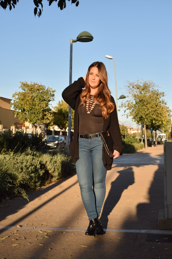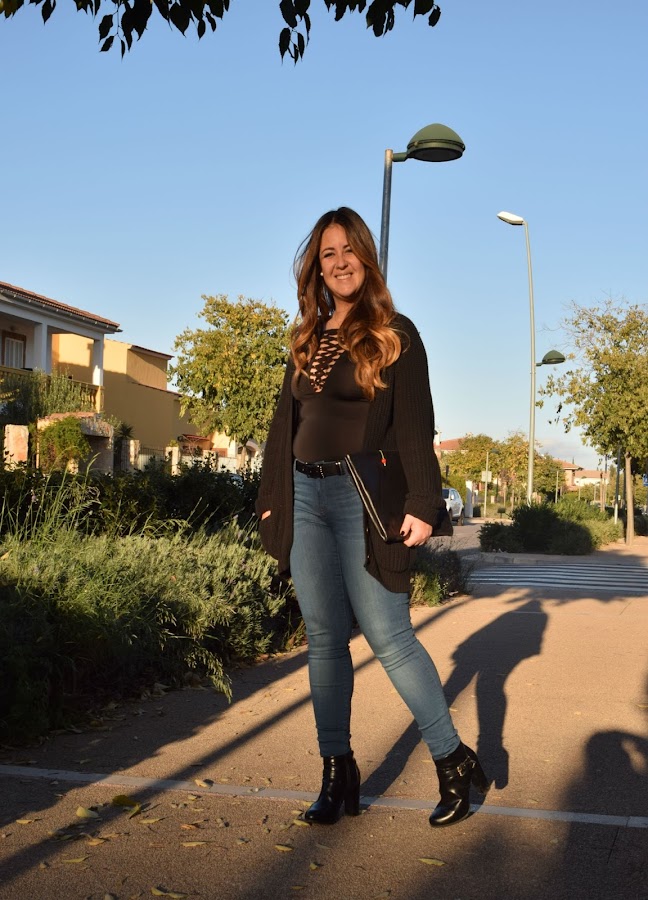 Buenos días!! Volvemos a la normalidad, y esto quiere decir... nuevo look! Ya sabéis que las cuerdas son tendencia esta temporada, las encontramos en botas, botines, faldas, camisetas... y yo me he hecho con un body! Me parece una prenda muy cómoda y fácil de llevar. Esta vez la he combinado con vaqueros y chaqueta de punto para un look de diario, pero se puede combinar con otro tipo de prendas para conseguir un look más festivo, de noche o más sexy, depende del look que nos apetezca. Espero que os guste, feliz miércoles!! Good morning! I return to normality with a new look! You know that the strings are trend this season, we found them in boots, booties, skirts, shirts... and I have bought a body! I think it is a very comfortable and easy to wear. This time I combined with jeans and cardigan for a daily look but we can combine with other kind of clothes for a sexier, festive or night look, depending on the look we want. I hope you like and happy wednesday! ¡¡¡Besos, mil gracias por vuestros comentarios!!!