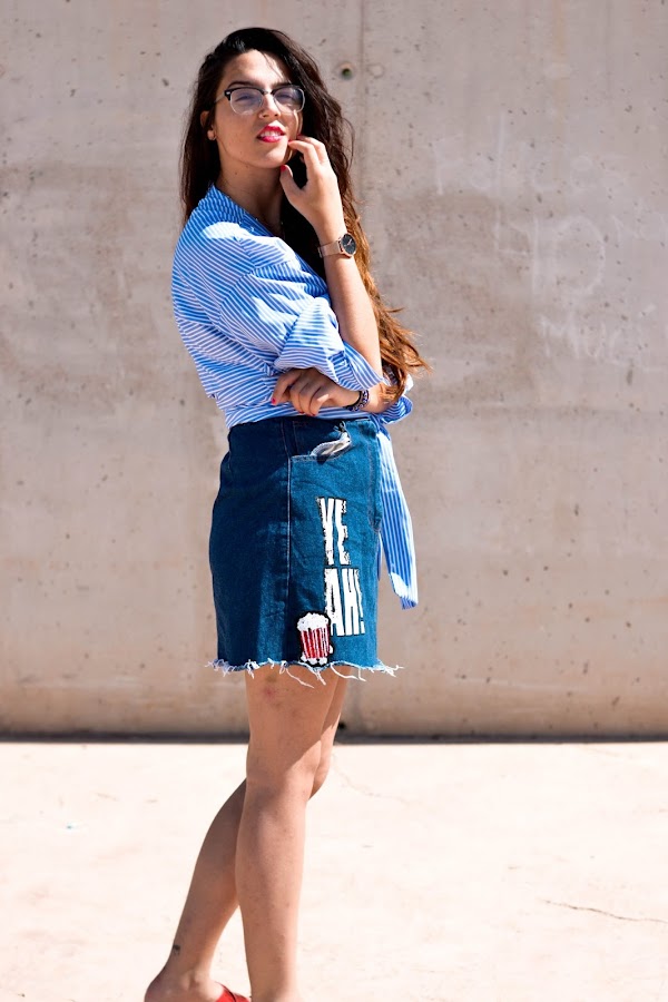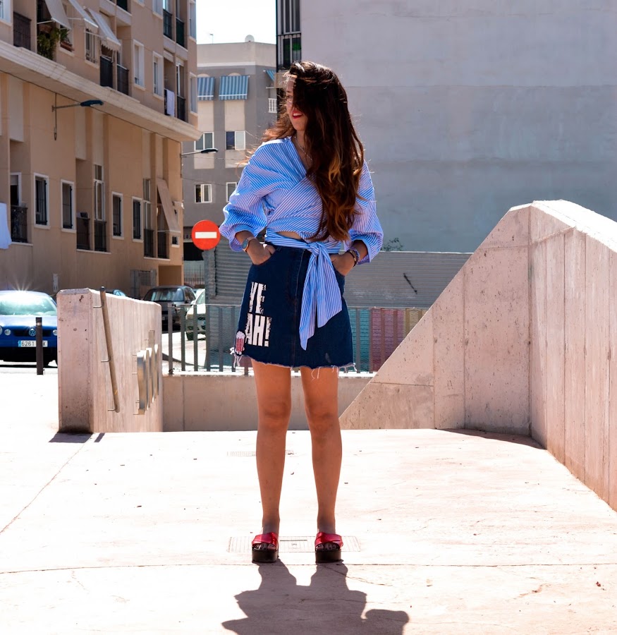 Es cierto que el corte de la falda me encantaba y me parecía que la hacía especial, pero de no haberla cortado no le habría dado el uso que le doy a día de hoy. Mucho más cómoda y versátil, puesto que al ser larga y vaquera, poco te dejaba hacer.