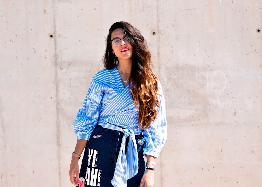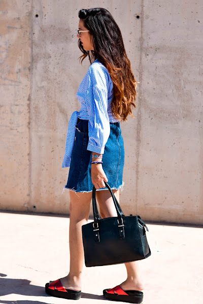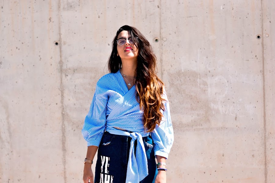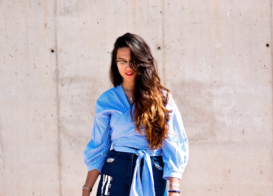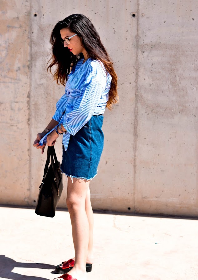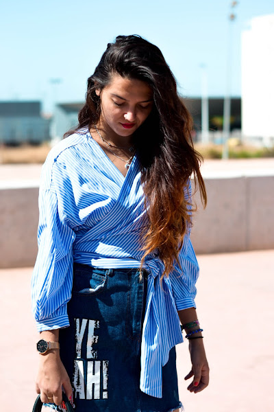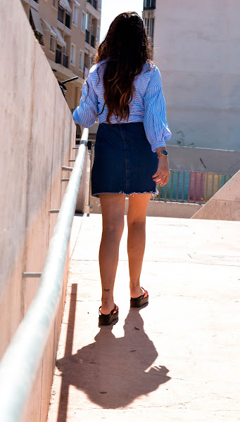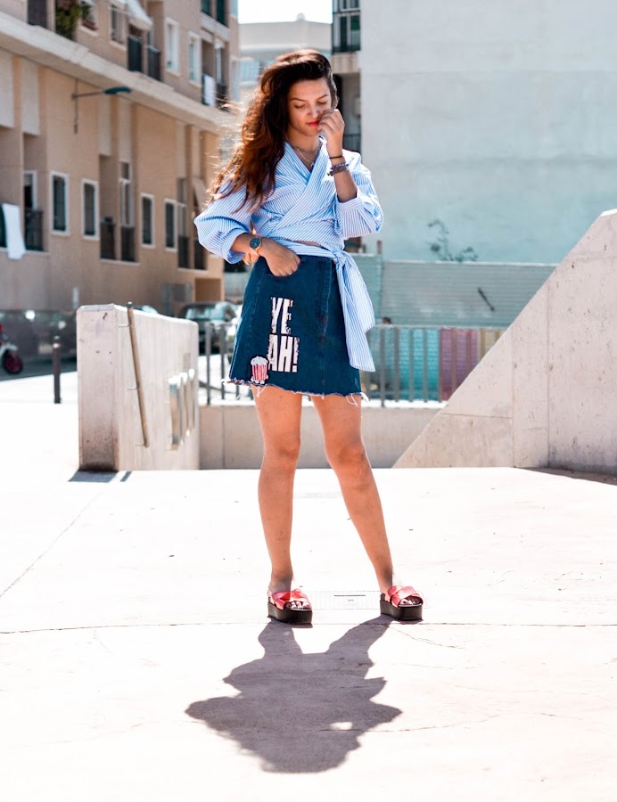 La combinación ha sido simple, así son los looks veraniegos, simples y repletos de color -necesito que llegue el invierno ya- he optado por esta blusa sin botones con estampado de rayas verticales y dolorsitos como diría Ratonlina. No sabéis el daño que me hacen estas plataformas y lo mucho que me gustan. Por favor, si alguna tiene una especie de truco para que dejen de hacerme esas tremendas llagas en los pies os prometo que os querré eternamente. ¡Ya no se que hacer!. Mis pies en verano acaban hechos un Picasso.