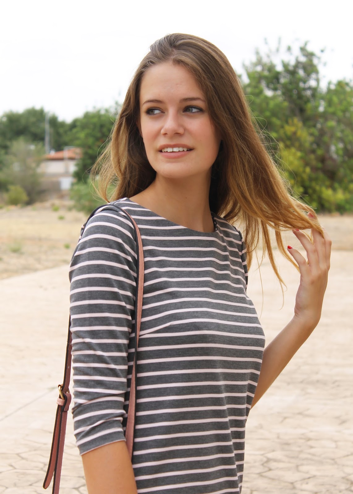 Today I wear a striped dress. I wear only three colors grey, pink and white. I think my outfit is perfect to go to the school, go walk or everything. In my opinion my dress is a must for autumn. I love this dress, is from Vila and it has got a good price.
