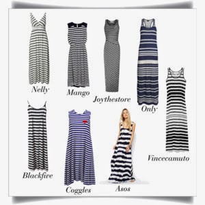 Pues ayer fui a las rebajas y alguna cosilla cayó en mis manos. Ya os iré enseñando. Lo primero que os traigo es un vestido de rayas largo. Tenía ganas de uno. Os he hecho una pequeña selección de vestidos y además os muestro el mío y cómo lo voy a acombinar.