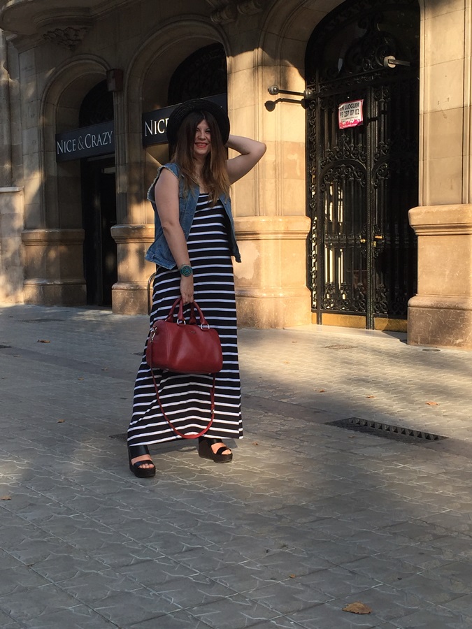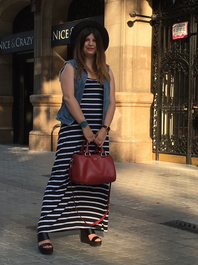 Bueno y volviendo al tema del titulo del post, también me he dejado caer para traeros un nuevo look, vestido largo de rayas, chaleco tejano, cuñas y mi inseparable sombrero de éste verano y así disfruté de una comida y posterior tarde de paseo por la Avda. Diagonal en Barcelona, aprovechando mi visita a varias tiendas deco que hay en la zona ;)