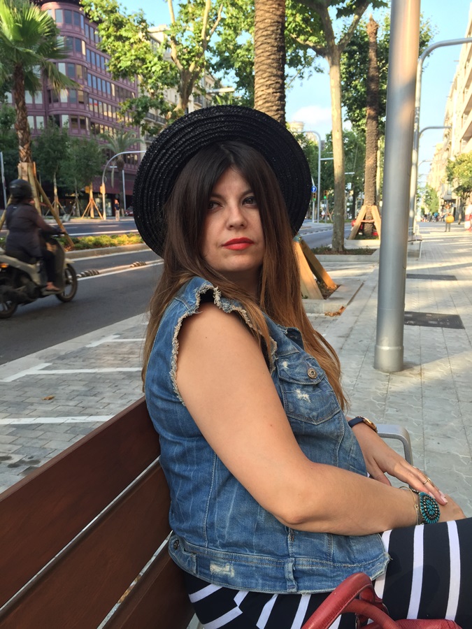Bueno y volviendo al tema del titulo del post, también me he dejado caer para traeros un nuevo look, vestido largo de rayas, chaleco tejano, cuñas y mi inseparable sombrero de éste verano y así disfruté de una comida y posterior tarde de paseo por la Avda. Diagonal en Barcelona, aprovechando mi visita a varias tiendas deco que hay en la zona ;)