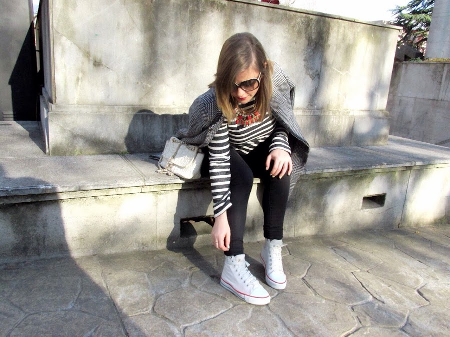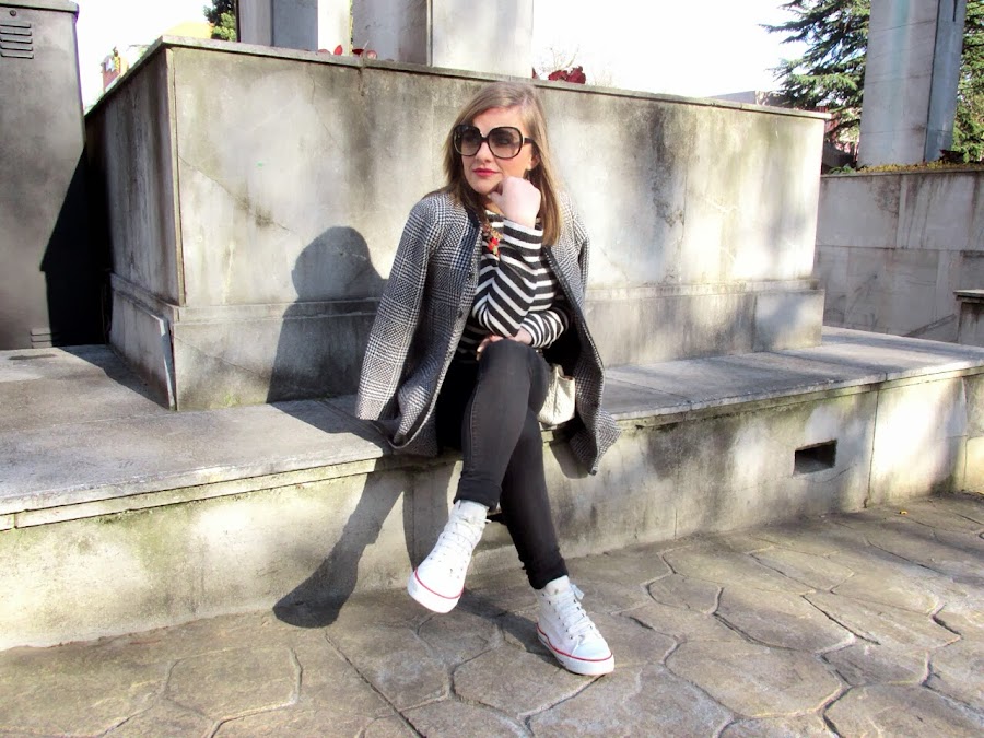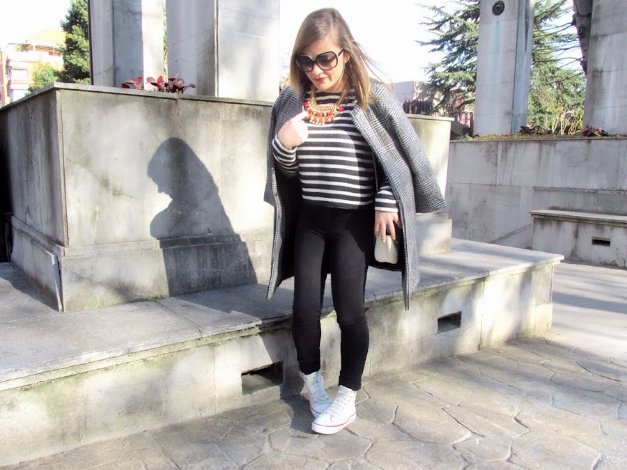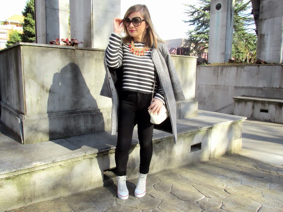 Recurrí a negro y blanco combinando estampados en el abrigo y en el top, como veis las rayas siguen con nosotros esta temporada.....¿se han ido alguna vez?.