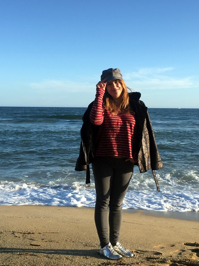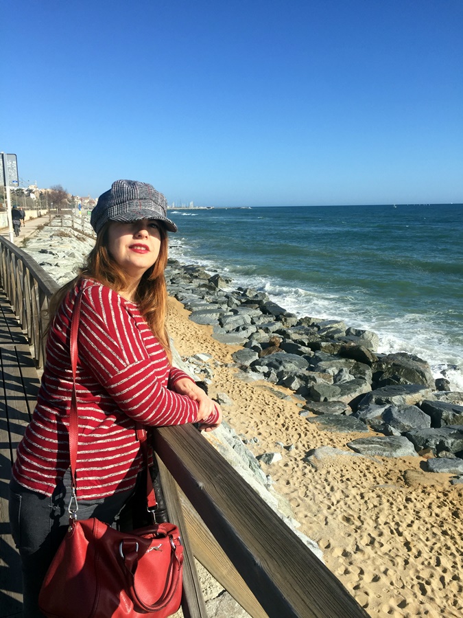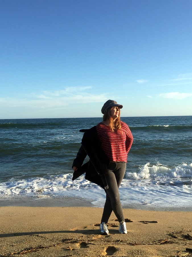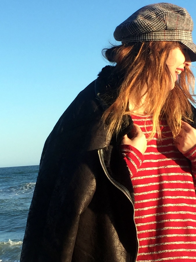 El frío ha vuelto y parece que para quedarse, pero con éste tiempo de locos no hay quien se estabilice, un día hace un sol tremendo y temperaturas casi primaverales y otro un frío que pela, tenemos un invierno movido por aquí, pero bueno, en éste post os traigo un look apropiado para ahora pero hacía un día espectacular, así que me permitió hacer alguna foto sin chaqueta. Un paseo de invierno por la playa, un vermut al sol y unas fotos para enseñaros el look sencillo que llevé ese día con mi biker de pelo compradas en las rebajas de Stradivarius combinada con camiseta a rayas y gorra de cuadros, espero que os guste ;)