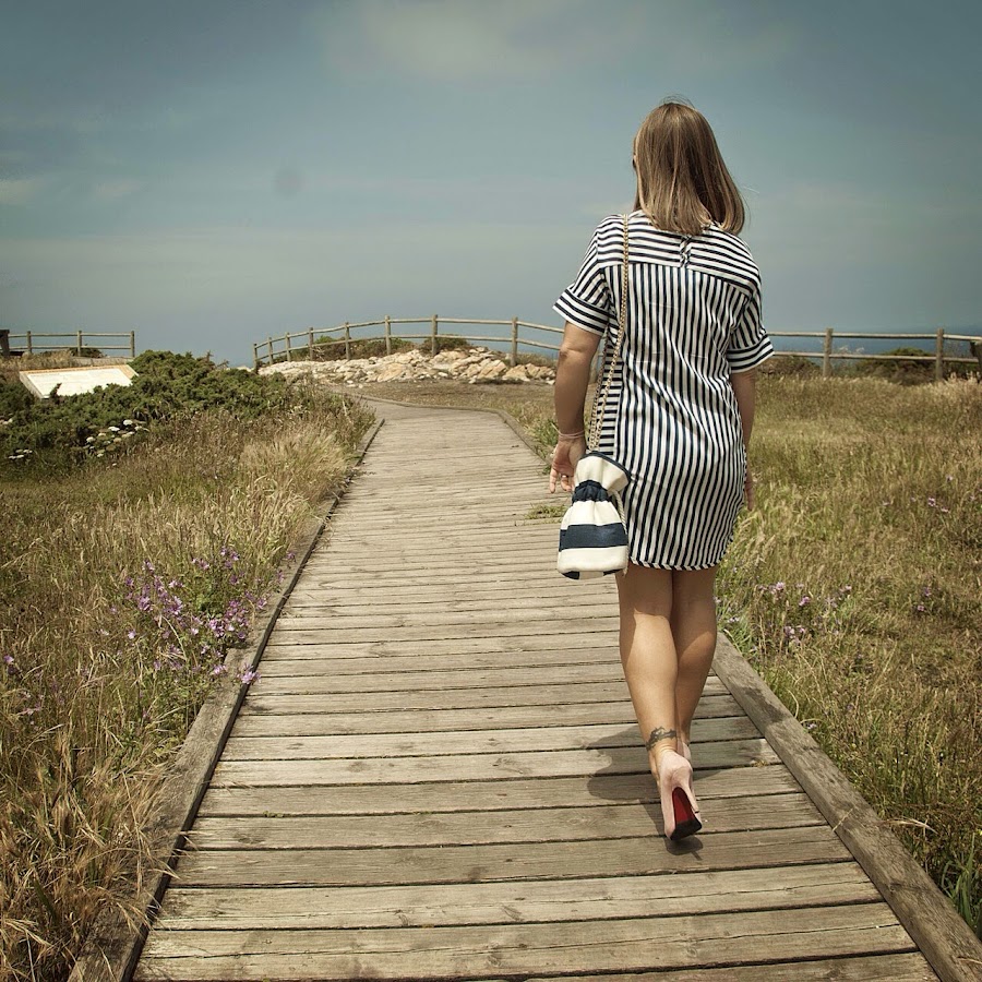 Aproveché para llenarme de rayas con éste vestido de Kling y mi bombonera marinera. Un look apropiado con inspiración Navy y toques en rosa. No se a vosotros pero a mi las rayas cada día me gustan más y año tras año siguen llenando nuestros armarios temporada tras temporada.