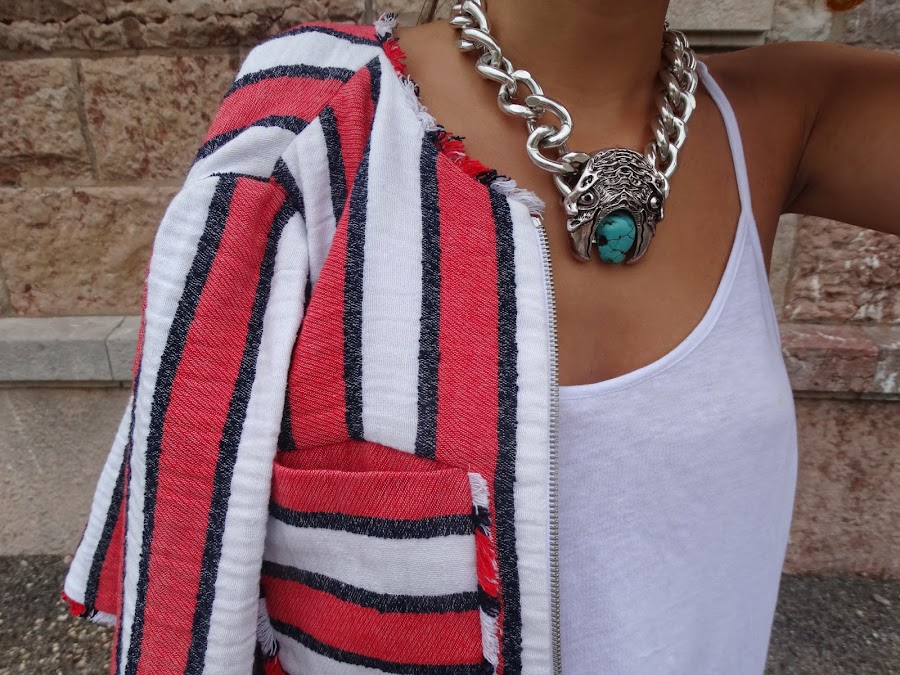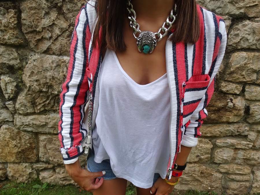 Hi folks! The warm weather in my city has not arrived yet so I"m still wearing jackets, and today I show you one of them that I buy on my vacation. The rest of the look are very basic, levis, white T-shirt and my birkenstock. What do you think? Happy weekend to all!