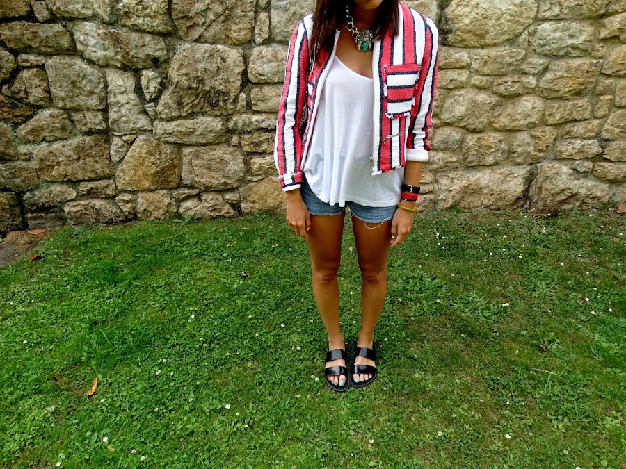 ¡Hola chicos! Parece que el tiempo veraniego en Asturias, como siempre, no se decide a aparecer y las chaquetitas siguen sin estar de más, así que aproveche para estrenar esta que compré en mis vacaciones, tenía muchas ganas de enseñárosla. El resto muy básico, levis, camiseta blanca y las Birkenstock que ya se han convertido en mis grandes compañeras este verano. ¿Qué os parece?