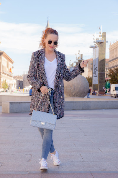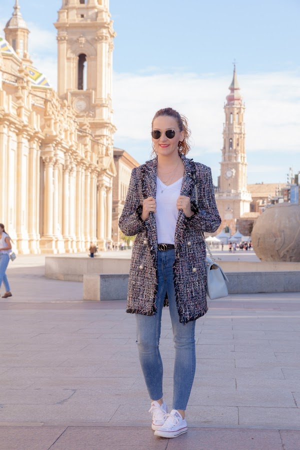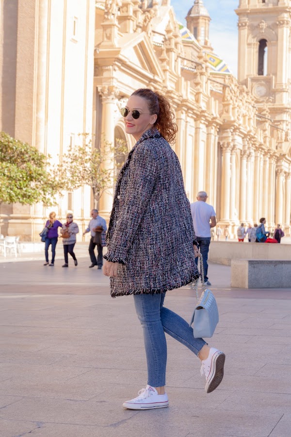 Los que me seguís desde hace tiempo ya sabéis lo que me gustan las prendas de tweed. Es un tejido que además de bonito se adapta genial a todo tipos de looks, por eso nunca tengo suficientes prendas de tweed. Hoy os enseño mi última compra, una chaqueta que combina tonos rojos, crudos y negros y que llevo en un look más formal pero al que tan solo cambiándole los zapatos de salón por unas Converse ...
