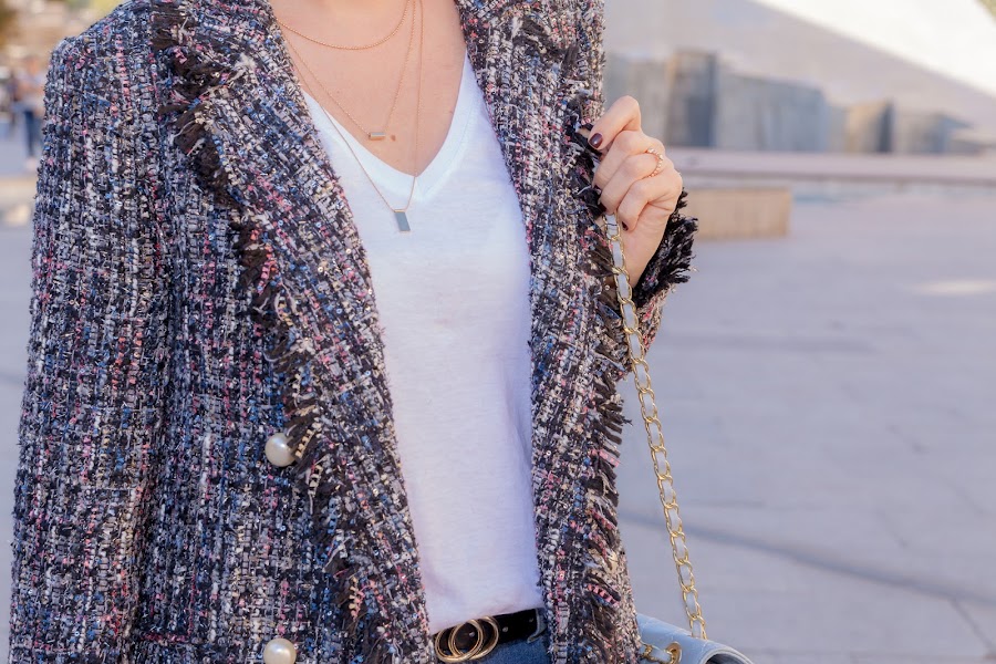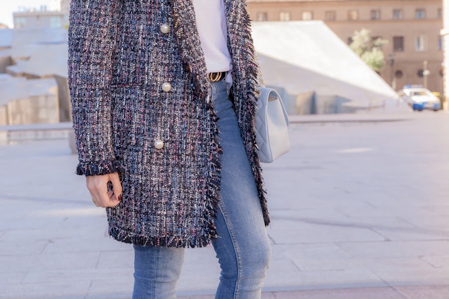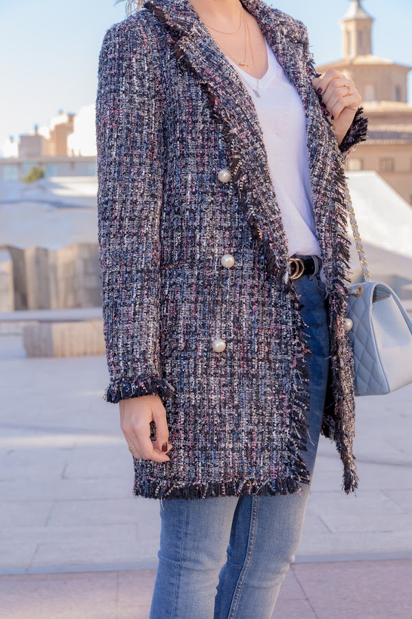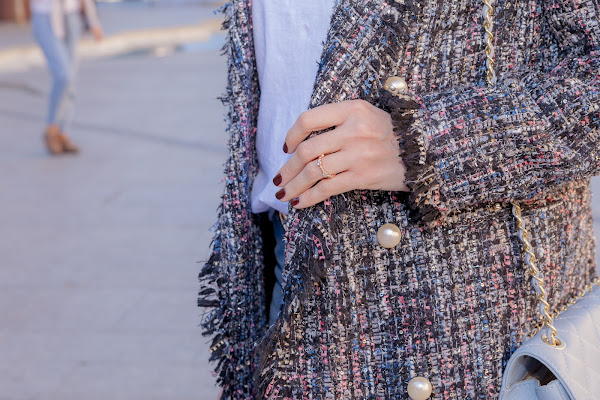Con lo adicta que soy a las chaquetas de estilo Chanel ya he perdido la cuenta de las que tengo. En invierno las utilizo bastante, por lo que no me importa seguir comprando más. Hoy os enseño mi última compra, una chaqueta de tweed con los bordes desflecados. El tweed es de hilos de varios colores por lo que la hace muy fácil de combinar. Hoy la llevo con un top lencero y mis nuevos jeans rectos. ...