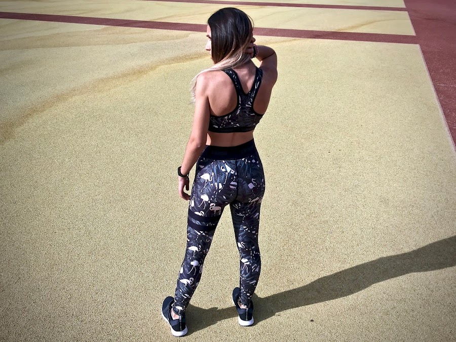 Llevaba varios meses detrás de un conjunto deportivo de STRONGER y por fin tengo el mío! Es el modelo Aruba, con tonos verdosos y negros y unos flamencos que dan el toque de color, como si de la isa del Caribe se tratara. Se ajusta de manera fuerte, la tela tiene propiedades de absorción de humedad, es elástica, resistente y de mayor soporte, mejora la circulación durante el entrenamiento, es suave pero fuerte y no se transparenta. Además es de secado rápido y con bloqueo UV. No se puede pedir más!!