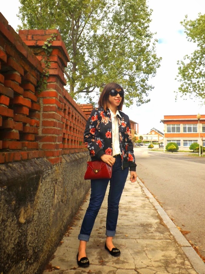 For today"s post, I propose you an outfit with my bomber as the protagonist. In a completely different style than I showed last week, when we combined it with white shirt and slippers, we get a much more elegant and chic set. If already announced Givenchy in his last collection, the flowers are not going to abandon the whole year!, And said and done, in this bridge station to the hottest summer flowers are still very present in jackets, blazers, and of course, in bombers.