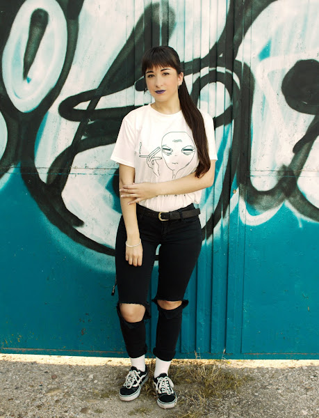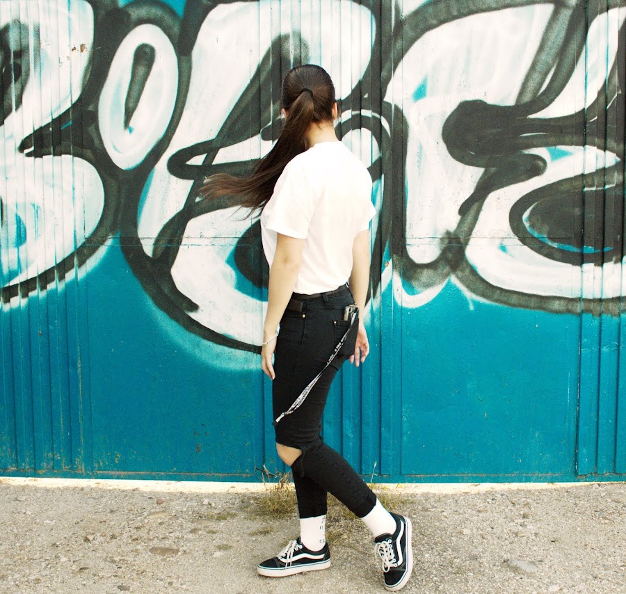 T-Shirt: Rosegal // Jeans: Stradivarius+DIY // Velt: Vintage // Socks: Rosegal // Shoes: Vans // Earrings: Primark // Jacket: Stradivarius
