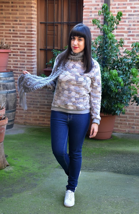 La sudadera de hoy con estampado de piedras es la prenda que me quedaba por enseñaros de mi paquete de Tosave. Hace poco os enseñé una sudadera de cerezas con pompones también de esta tienda, la que hoy os enseño es menos colorida pero es más suave y caliente. En cuanto a la calidad, está muy bien, y más teniendo en cuenta el precio, que no alcanza los 7. Tiene tacto de peluche. En cuanto a la talla, viene un poco pequeña, yo pedí una L y es un poco justa así que cuidado con las medidas.