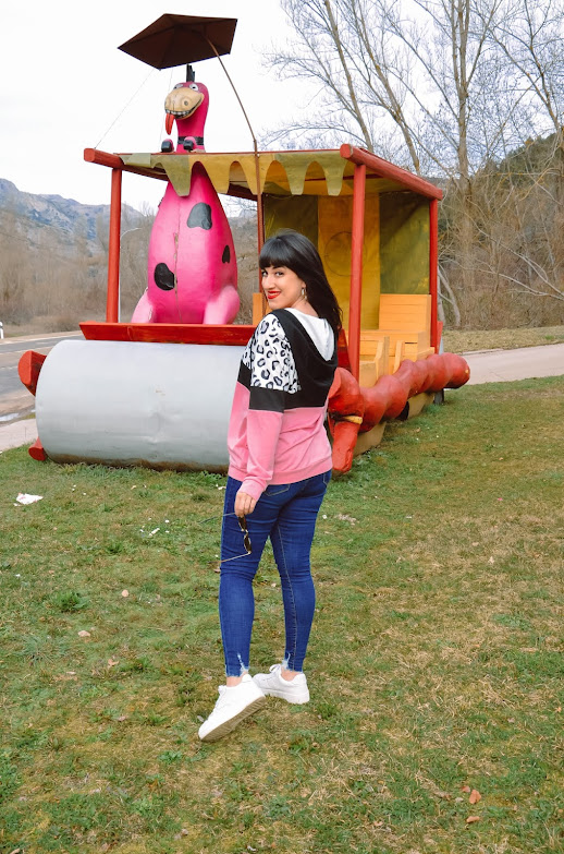 Aprovechando que tenemos este troncomovil tan cerca de casa, hicimos estas fotos tan divertidas y es que parece que voy a conjunto con Dino jajaja.
