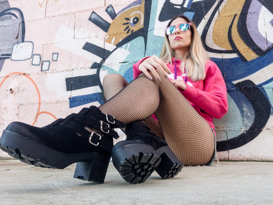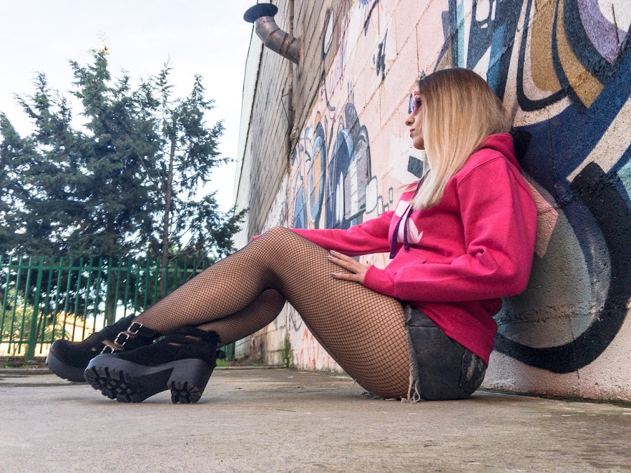 La he combinado con unas medias de rejilla y unos shorts rotos y deshilachados, para darle un toque grunge al look y mis botines de hebillas de KRACK ONLINE!
