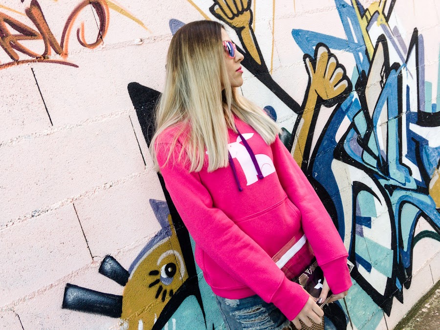 I recently presented a brand that I loved! They have a lot of sweatshirts, t-shirts and sunglasses very molonas, and if you follow my blog, youll meet PEPPU. This time, in pink with Peppu, the protagonist of the mark, stamped on the front. Also, I have loved the cuffs of this sweatshirt, as it has an opening to stick the finger.