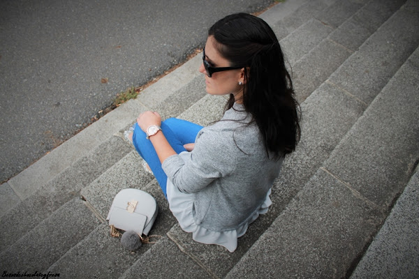 Complete the look with jeans with broken knees, silver sequined dancers, as in trend this season, white pompom bag with gray and my new watch, birthday gift Parfois brand. What do you think?