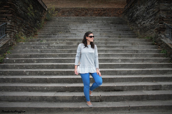 Today I bring you a look in gray tones, comoe hese days we are having, because it seems that the fall or even winter came suddenly. This time I took my new sweatshirt @besosdechocolateyfresashop with ruffles at the bottom and pocket detail, super loving the chilly ideal for solo or put a biker over days touch.