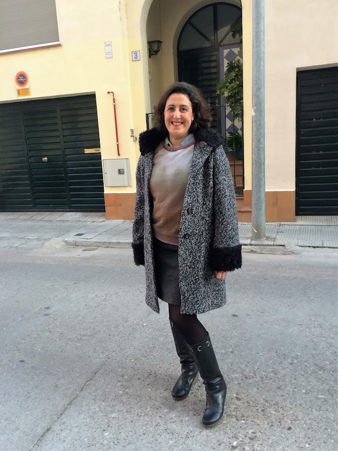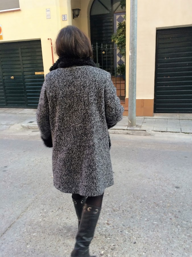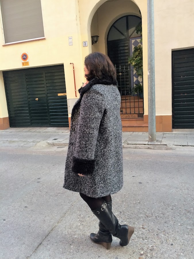 Pero como el tiempo no esta para ir a cuerpo, que menudo frío esta haciendo, mejor nos ponemos un abrigo, yo en esta ocasión uno que confeccione yo misma el año pasado y el tejido es lana y es muy abrigado.