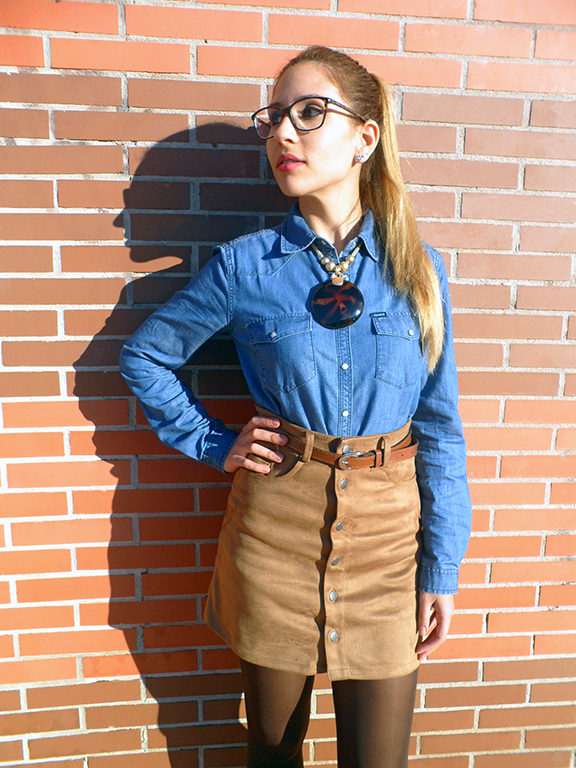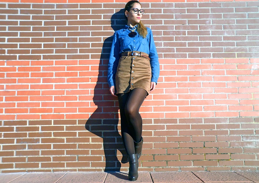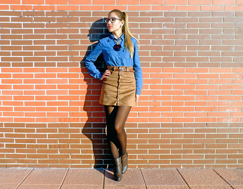 No he podido resistirme a esta tendencia y por fin, os enseño mi nueva falda línea A de ante, de color marrón y abrochada por botones en la parte delantera.