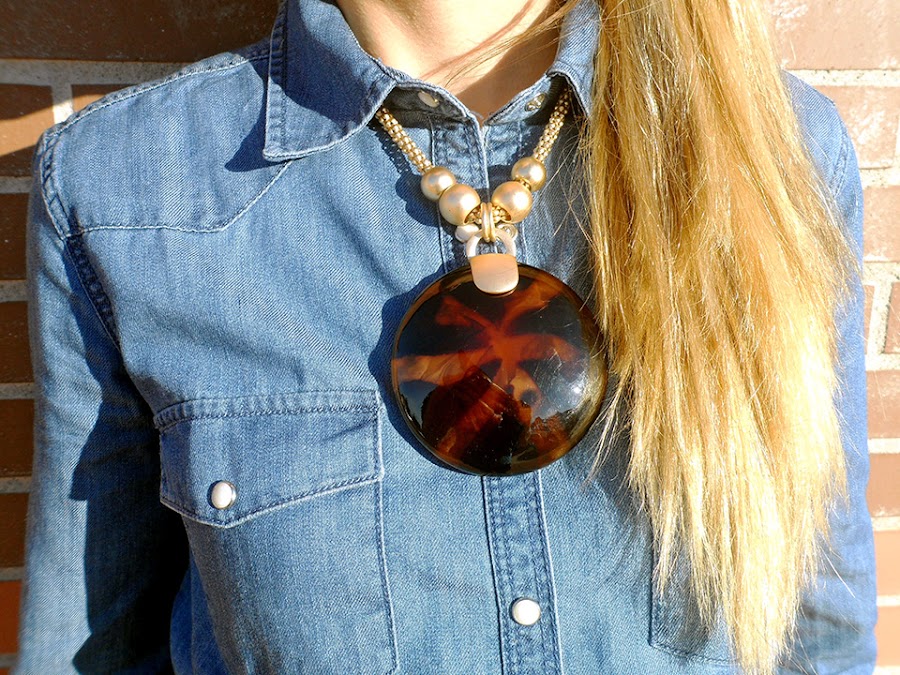 Para combinarla, he elegido otra tendencia estrella, el denim. Esta vez, con una camisa vaquera y unos complementos súper vistosos!