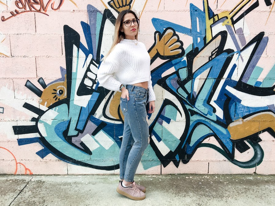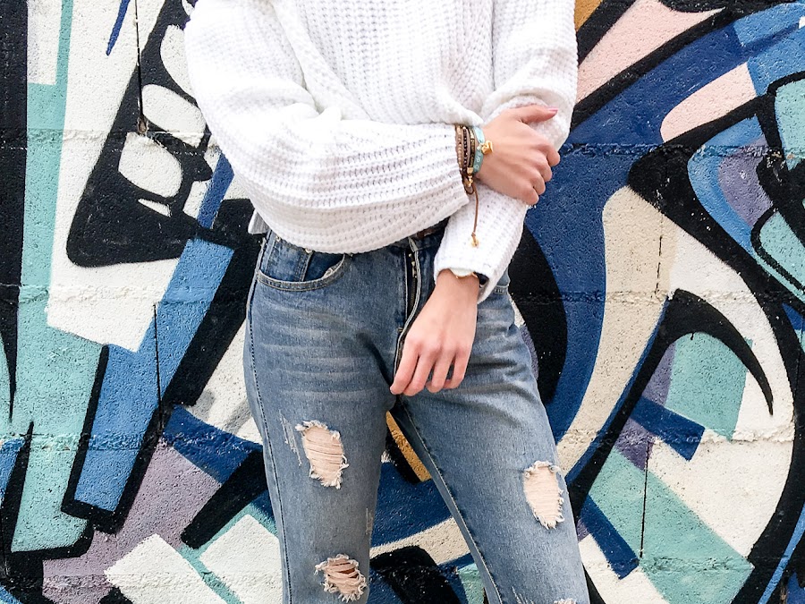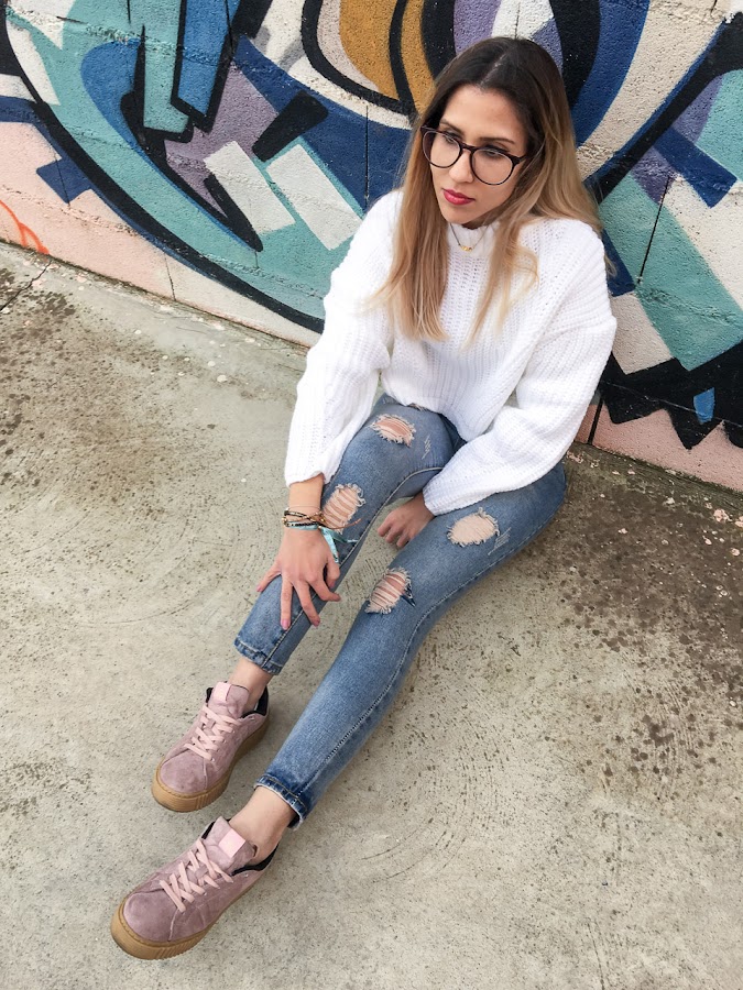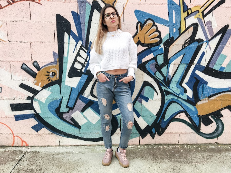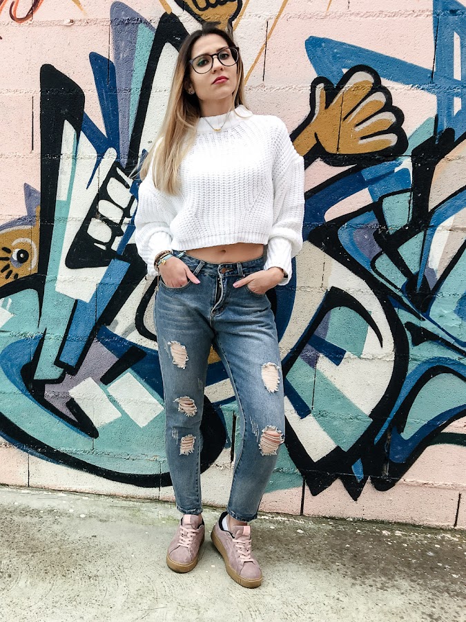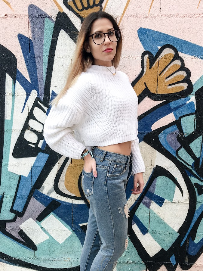 Hoy os traigo un look relajado y cómodo de SHEIN. La verdad es que con el frío que hace, me apetece que sea un finde de relax total, por eso me he plantado unos distressed jeans rotos súper cómodos y un jersey crop asimétrico blanco.