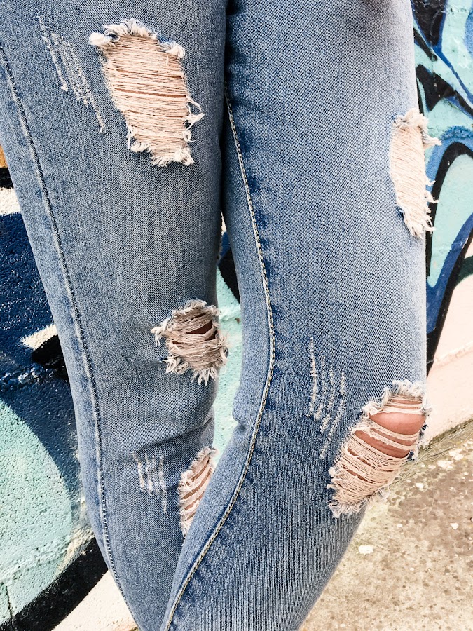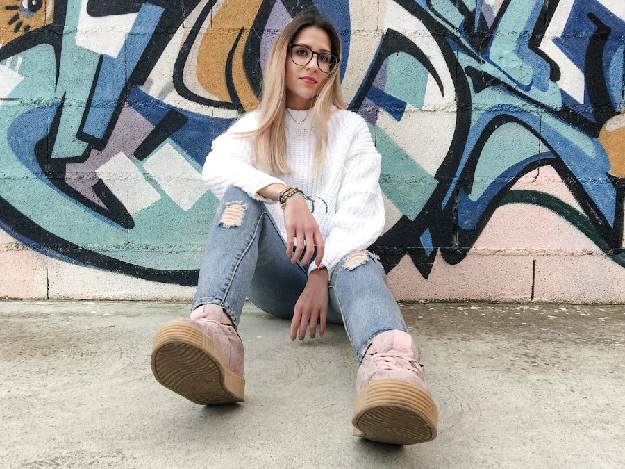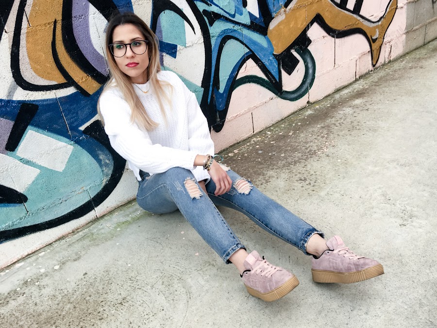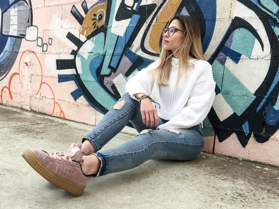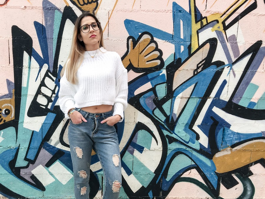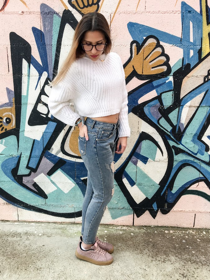 Hoy os traigo un look relajado y cómodo de SHEIN. La verdad es que con el frío que hace, me apetece que sea un finde de relax total, por eso me he plantado unos distressed jeans rotos súper cómodos y un jersey crop asimétrico blanco.