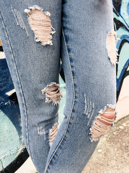 Today I bring you a relaxed and comfortable SHEIN look. The truth is that with the cold does, I feel like a weekend of total relaxation, thats why I wear distressed very comfortable broken jeans and a white asymmetric jersey crop.