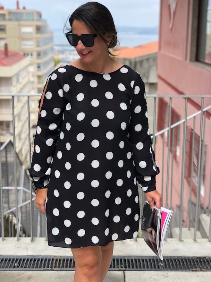 Yo lo combiné con sandalias negras con tachas en dorado y mini bolso de Victorias Secret que compré en mi viaje a Nueva York. ¿Vosotras también sois fans de los lunares como yo?