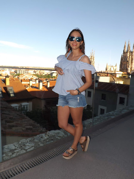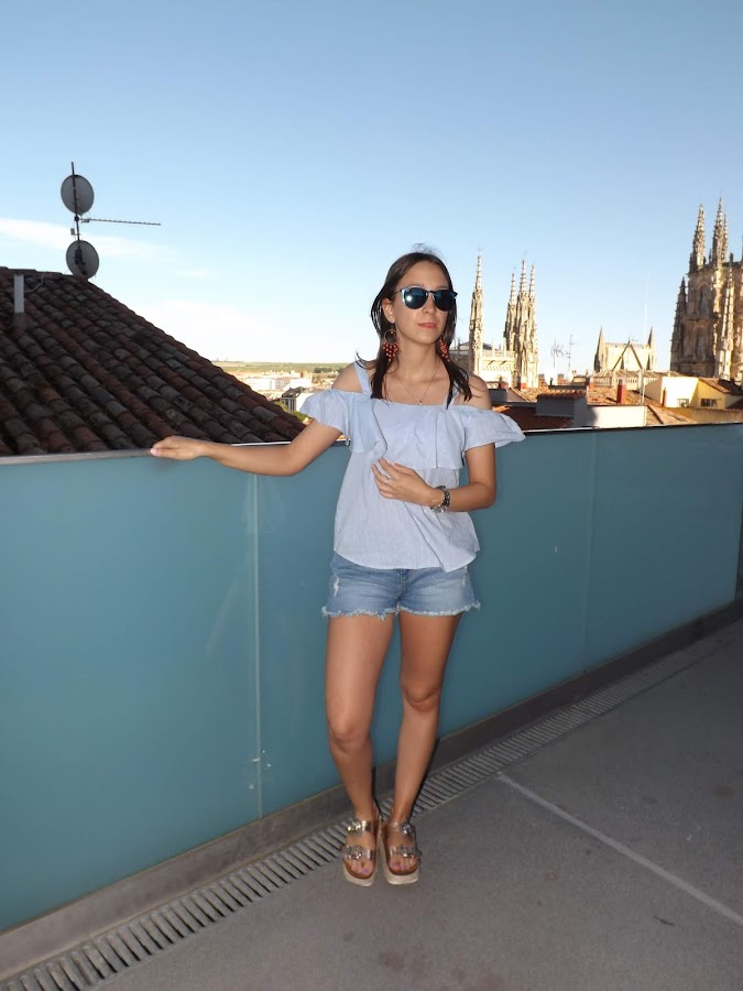 Parece que el buen tiempo ha llegado y yo no puedo estar más contenta porque así puedo estrenar todas las prendas nuevas que llevaban meses en el armario, como este top con los hombros al descubierto de Primark. Lo combiné con shorts vaqueros y sandalias con plataforma en color bronce también de nueva temporada.