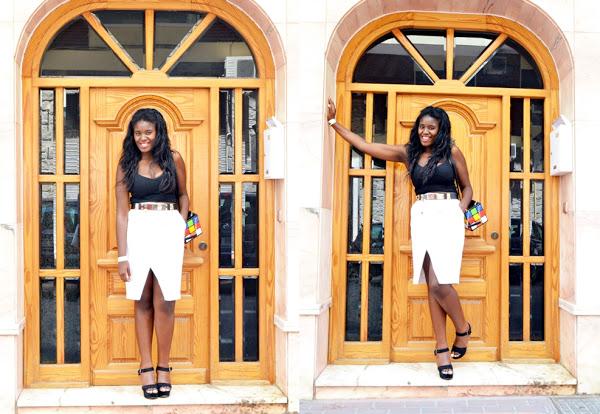 Top: Bershka (new)(AQUI/HERE) / Falda: Zara (old) ( SIMILAR HERE) / Cinturón: Asos (old) ( SIMILAR HERE) / Tacones: MaryPaz (new) (AQUI HERE) / Cubo Rubik:Twinkledeals ( AQUI HERE)