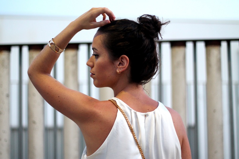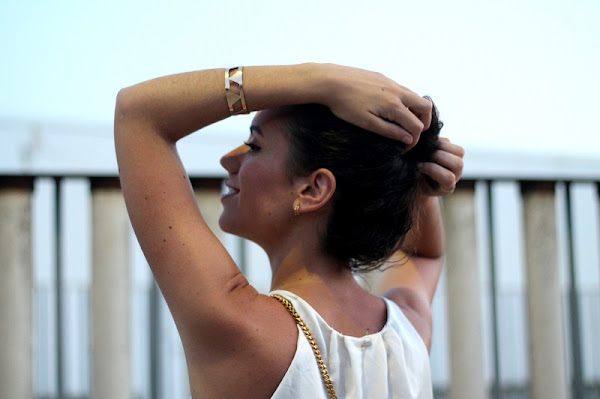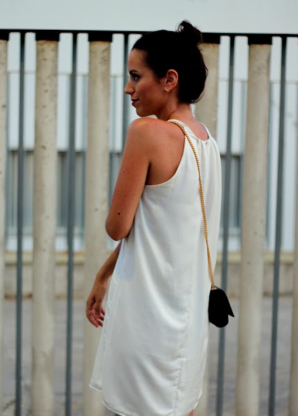 Estaba blanca como la pared...y aunque un día de playa no sea suficiente para ponerte morenita (y menos con buena protección como tiene que ser...) ya me dio la sensación de no tener ese tono invernal! Así que aproveché para ponerme un vestido blanco para salir de cena y fiesta. Hace muy poquito os mostraba otro vestido escote halter, en versión negro y más informal, podéis verlo aquí. Cada vez me gusta más este escote.
