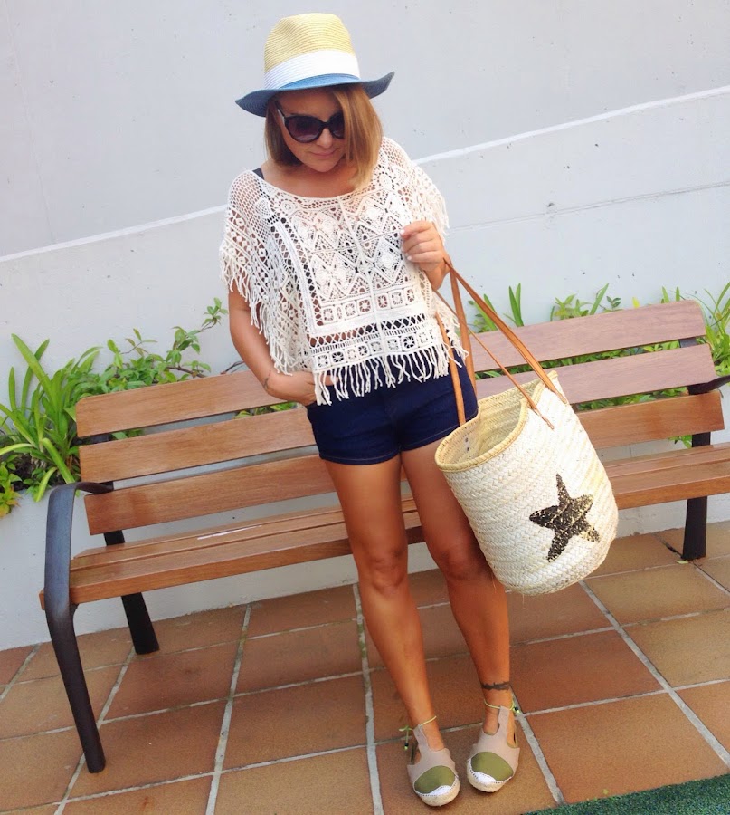 Soy fan de los shorts denim para la playa o piscina y los looks hippies creo que son lo mejor. Por supuesto, comodidad y nada mejor para eso que unas alpargatas, sombrerito, capazo y...¡lista!.